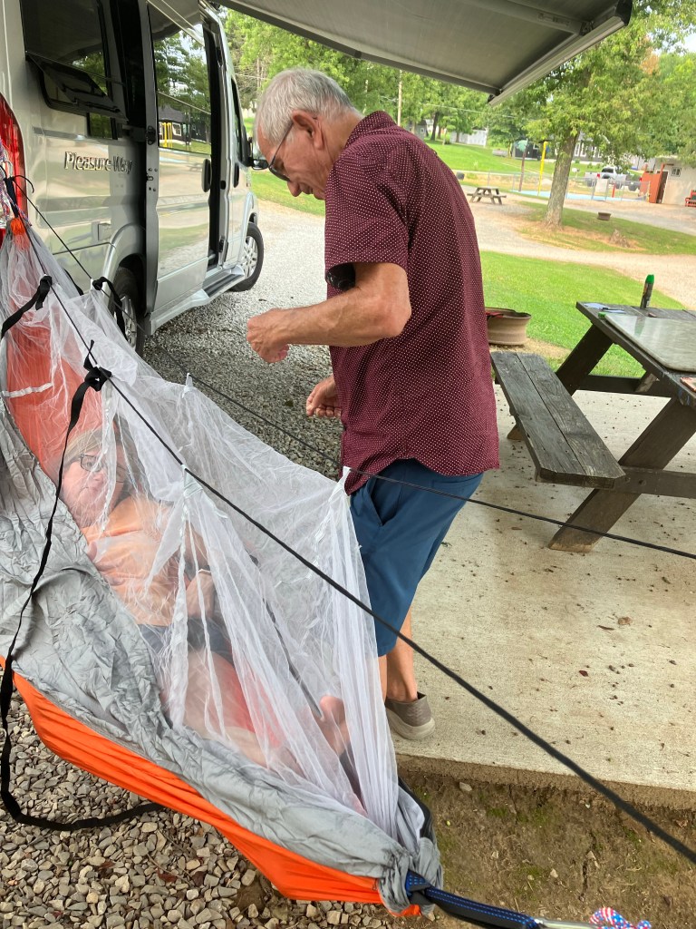 We must leave and are heading toward the town of Emblem,WY, population, 10, then to Cody to fill up on water and fuel, $4.49 for regular is the highest we’ve seen. Approaching Yellowstone, sign says No tent camping due to GRIZZLY BEARS. Yikes, glad we are in a glamper.